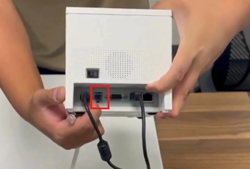 Abra la caja registradora y localice el cable en su interior, este cable conecta la caja registradora con la impresora de recibos. Conecte un extremo del cable a la caja registradora.