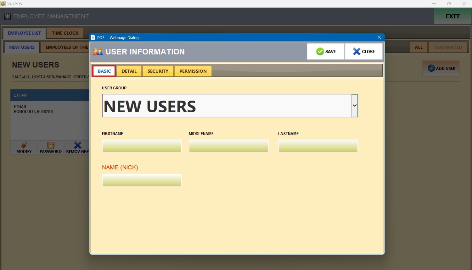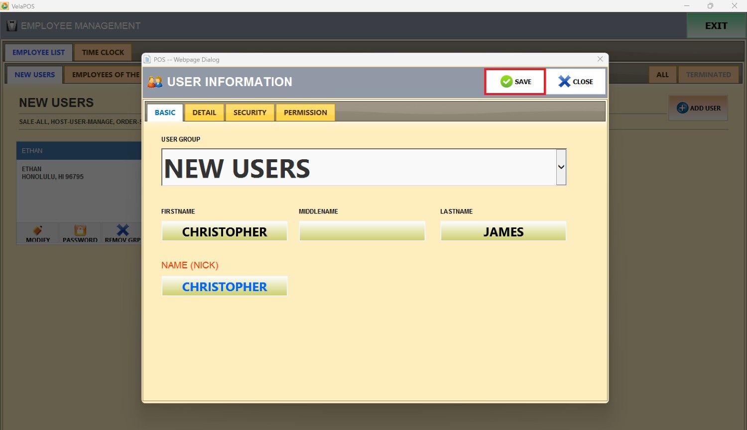 Sugerencia: Puede introducir información adicional en la pestaña DETAIL, pero solo se requiere el nombre del empleado para crear el usuario.