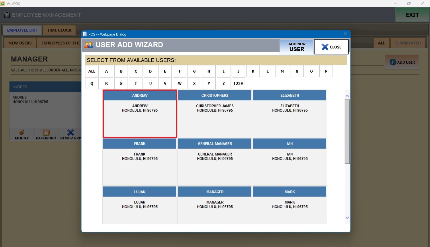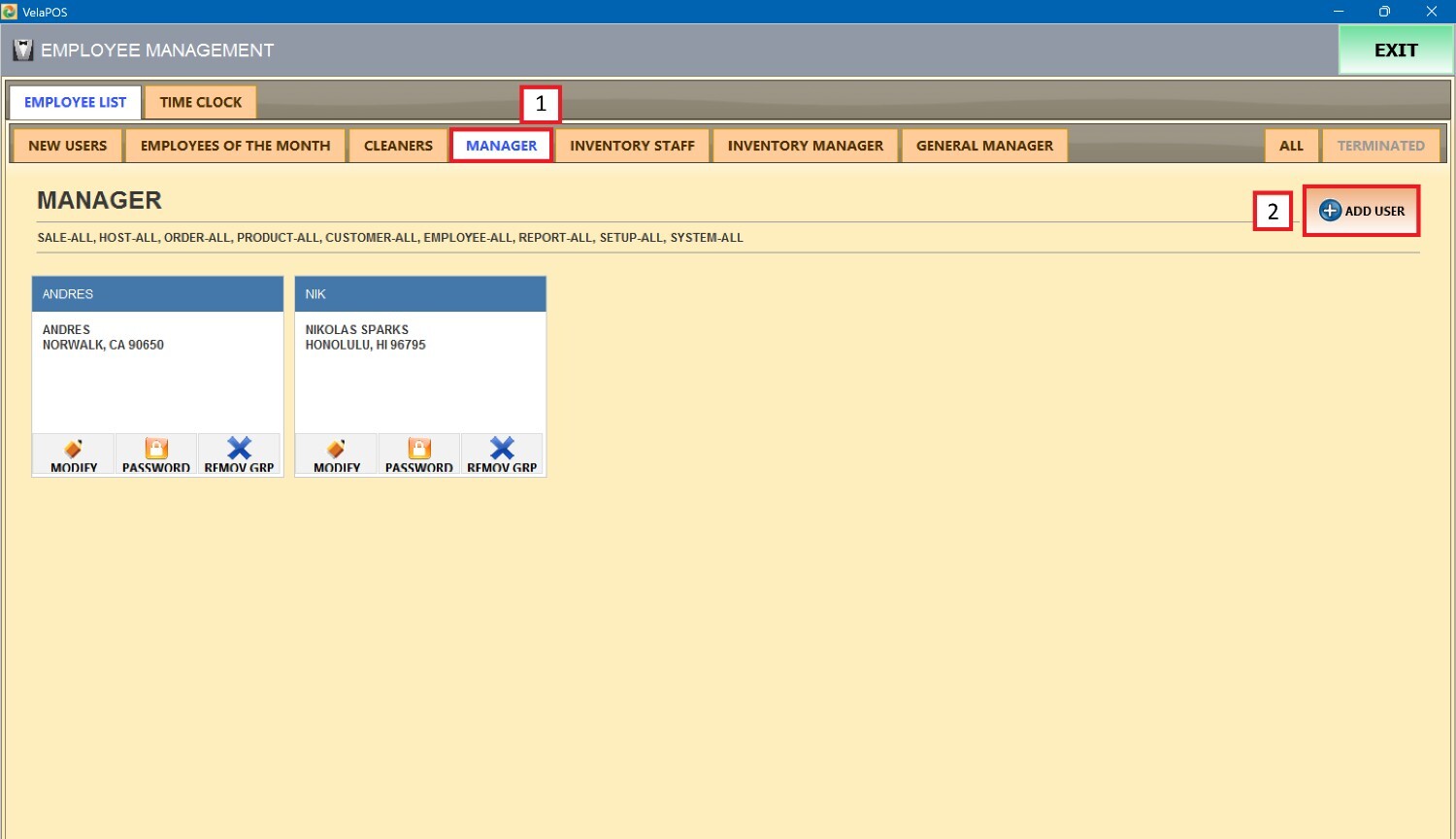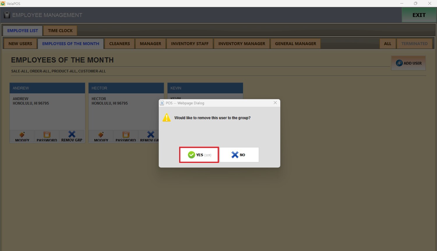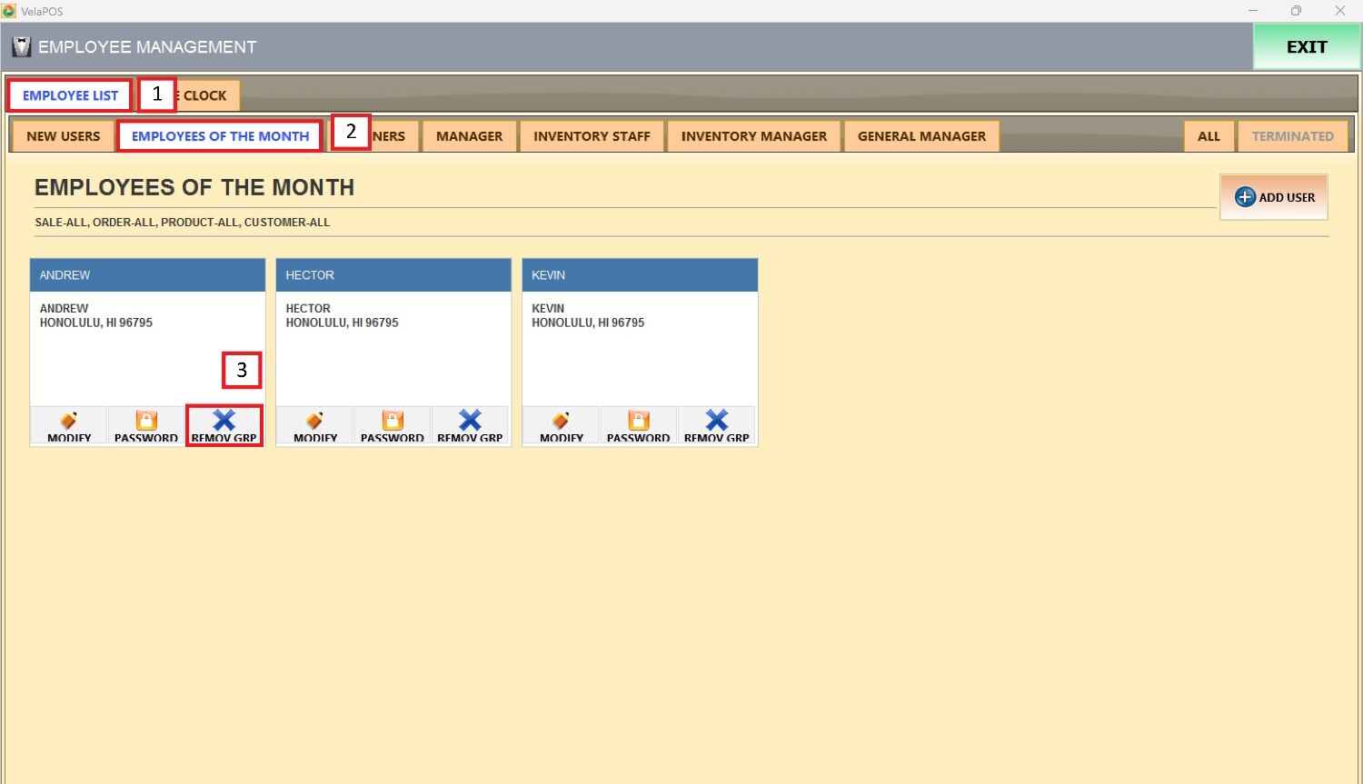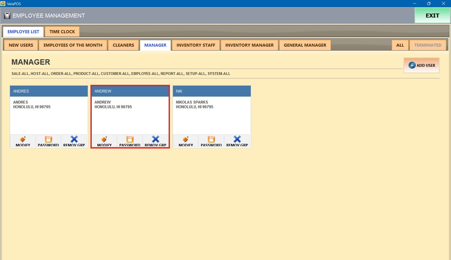 Para mover a un empleado a un grupo diferente, vaya a USER LIST y seleccione el grupo al que pertenece actualmente.